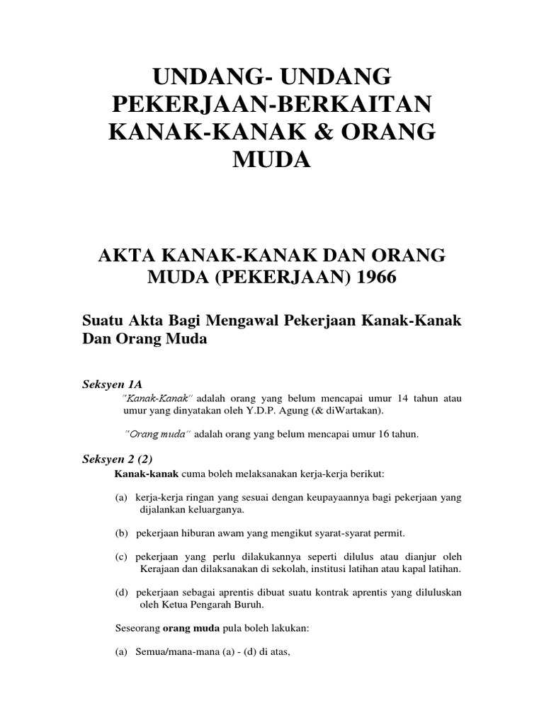 2 akta ini mula berkuat kuasa pada tarikh yang ditetapkan oleh menteri melalui pemberitahuan dalam warta. Sehubungan itu artikel ini bertujuan untuk menganalisis beberapa jenis kesalahan seksual terhadap kanak kanak. 1 akta ini hendaklah terpakai bagi kanak kanak yang berumur di bawah lapan belas tahun. Sebagaimana pada 1 november 2017 diterbitkan oleh pesuruhjaya penyemak undang undang malaysia di bawah kuasa akta penyemakan undang undang 1968 2017.
