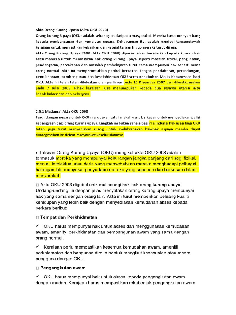 Akta orang kurang upaya 2008 in english. Antaranya ialah seksyen 26. Ang labuan school of international business and finance universiti malaysia sabah abstract. Akta 685 akta orang kurang upaya 2008 pdf google drive. Definisi oku mengikut akta orang kurang upaya 2008 oku termasuklah mereka yang mempunyai kekurangan jangka panjang fizikal mental intelektual atau deria yang apabila berinteraksi dengan pelbagai halangan boleh menyekat penyertaan penuh dan berkesan mereka dalam masyarakat.