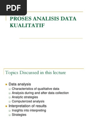 Analisis data kualitatif pdf. Islam dan masyarakat banjar deskripsi dan analisa kebudayaan banjar. Teknik analisis data yang digunakan dalam penelitian kualitatif mencakup transkip hasil wawancara reduksi data analisis interpretasi data dan triangulasi. Sifat data ini berbeda dari data kuantitatif yang relatif lebih sistematis terbakukan dan mudah. Data kualitatif bersifat mendalam dan rinci sehingga juga bersifat panjang lebar.