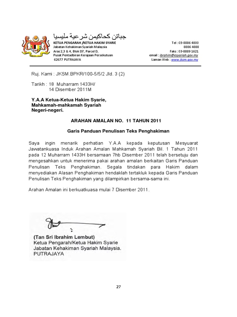 Arahan amalan mahkamah syariah jksm. Tambahan kod pendaftaran kes. Maksud perkataan bertindak atau berkelakuan tidak sopan di dalam seksyen 29 akta enakmen kesalahan jenayah syariah negeri negeri. Penyerahan notis sulh secara akuan penerimaan pos berdaftar a r. The issuance of practice direction by jksm is for the purpose of strengthening the administrative and judicial management of shariah courts.