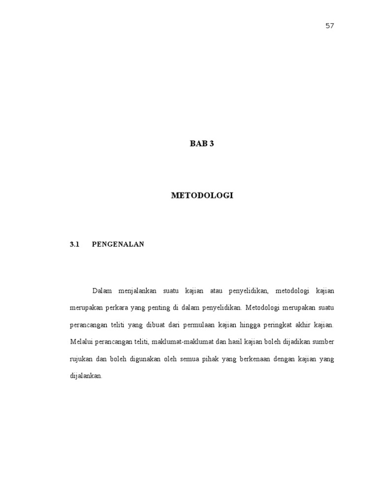 Penemuan dan analisis 5 1 7 bab 4. Bab 3 metodologi kajian 3 1 pendahuluan dalam bab ini akan diterangkan aspek aspek berkaitan metodologi kajian yang digunakan dengan lebih jelas dan terperinci. Bab 6 penilaian projek tahun akhir 6 1 penilaian dan pemarkahan 36 6 2 pembentangan hasil projek 36 6 3 penilaian keseluruhan 38 6 4 pemarkahan 38 7. Kaedah kajian metodologi 5 1 7 bab 3.