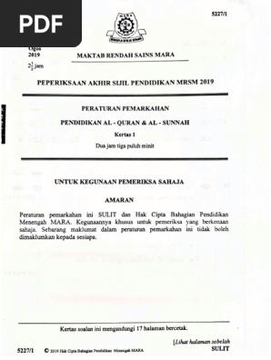 4531 3 2018 hak cipta bahagian pendidikan menengah mara confidential maktab rendah sains mara peperiksaan sijil pendidikan mrsm 2018 physics paper 3 one hour and thirty minutes do not open this question booklet until told to do so this booklet consists of 16 printed pages examiner s code. Maklumat lanjut boleh menghubungi pihak bahagian pendidikan menengah mara. Peraturan pemarkahan ini sulit dan hak cipta bahagian pendidikan menengah mara. 1119 1 kertas soalan ini mengandungi 21 halaman bercetak.