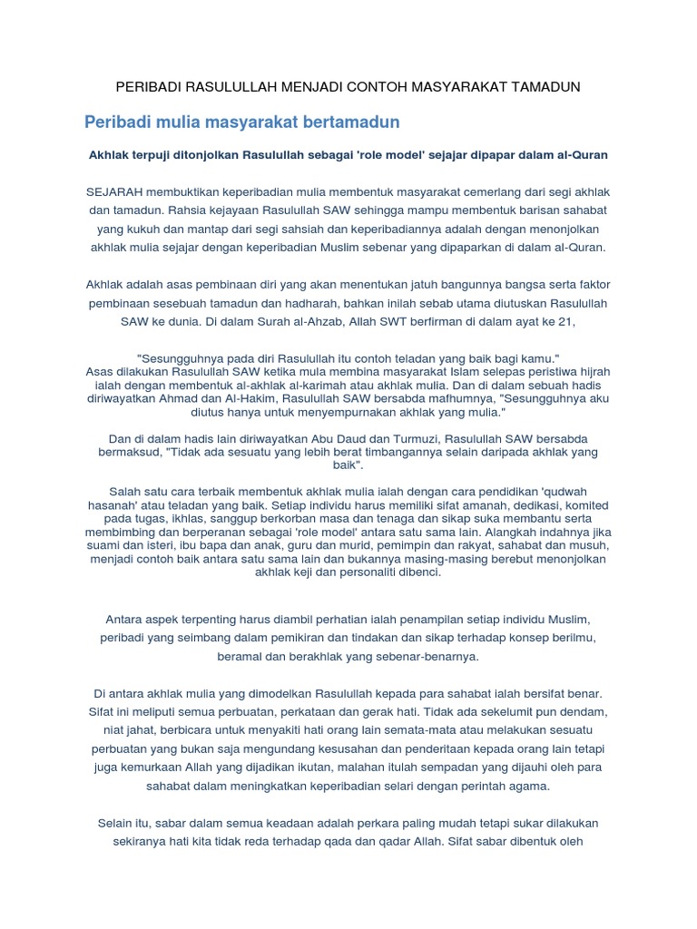 Beriman Kepada Qada Dan Qadar Dapat Membentuk Peribadi Mulia