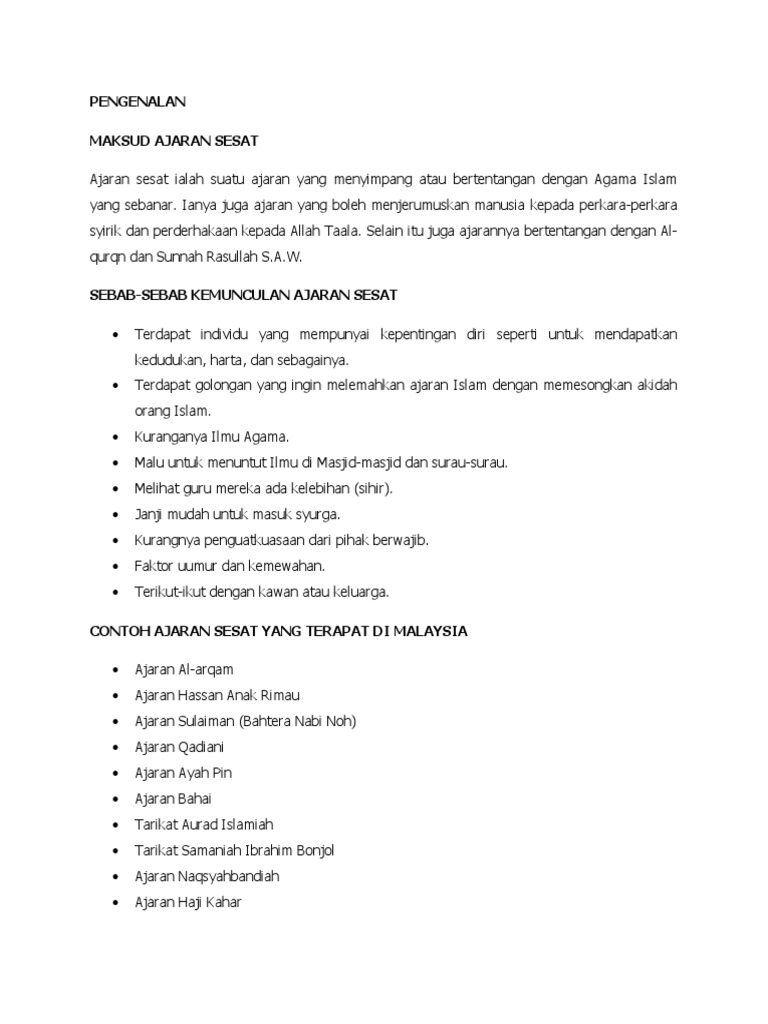 Contoh ajaran sesat di malaysia 2020. 29 35 terdapat 11 orang individu yang memimpin ajaran sesat sejak zaman rasulullah saw dan zaman khulafa. 2 2 sejarah ajaran sesat ajaran sesat telah bermula sejak awal islam di mana wujud kelompok kelompok yang dipimpin oleh individu individu yang mengaku sebagai nabi. Budi suci sejati 5. Silat sunda pukulan ghaib 7.