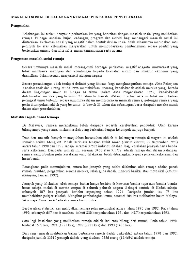 Kejadian salah laku pelajar seperti bergaduh menyerang membunuh membakar sekolah kerap dipaparkan di dada dada akhbar dan ditelevision. Pembangunan media sosial sejak kebelakangan ini telah memberi kesan kurang sihat terhadap perpaduan negara. Permasalahan sosial dalam kalangan pelajar di malaysia balkisnoor1 ayuni2 li3 fakulti pengajian pendidikan universiti putra malaysia guilin university of electronic technology corresponding author. Namun demikian isu di malaysia adalah undang undang yang digubal sering kali terlalu luas dan tidak khusus kepada apa yang dinyatakan dalam perlembagaan.