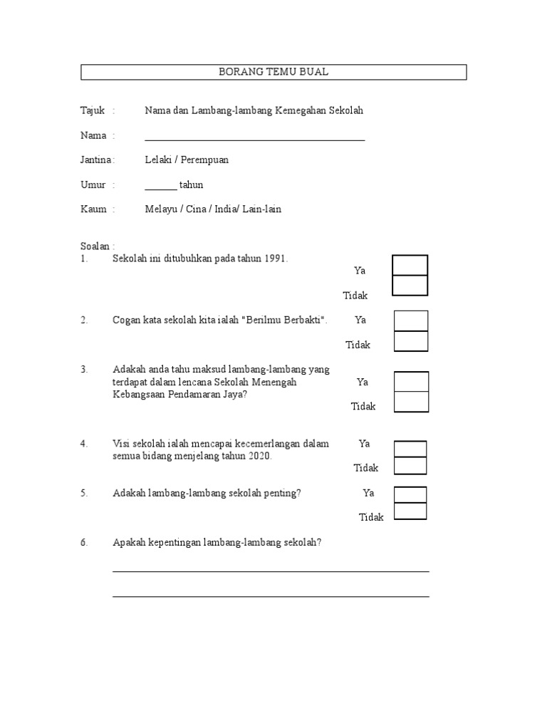 Semuanya bertujuan untuk memudahkan adik adik pelajar tingkatan 3 untuk buat yang terbaik seperti yang dimahukan oleh pihak kpm. Borang temu bual ragini mani. Borang temubual siap panda ren. Contoh skrip temu bual kerja kursus sejarah jeya kumar.