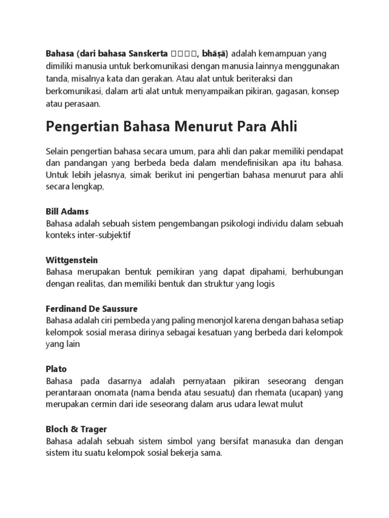 Definisi bahasa bahasa adalah alat komunikasi yang berupa system lambang bunyi yang dihasilkan alat ucap manusia sebagaimana kita ketahui bahasa terdiri atas kata kata atau kumpulan kata. Menurut luxemburg bal dan weststeijn. Tokoh menurut bahasa 1 k tokoh menurut benua 6 k tokoh menurut jenis kelamin 3 k tokoh menurut kewarganegaraan 236 k 1 h. Arti kata tokoh menurut kbbi.