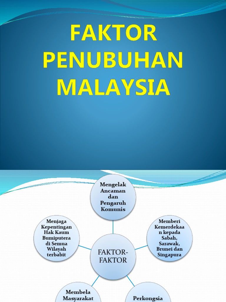 Faktor faktor pembentukan malaysia pada tahun 1963. Tanah melayu mencapai kemerdekaan pada 31 ogos 1957. Malaysia akhirnya diisytiharkan pada 16 september 1963. Berdasarkan ucapan tersebut menunjukkan ajakan itu bersifat halus dan tidak bersifat memaksa. Pembentukan malaysia 1963 idea awal pembentukan malaysia melalui pengabungan singapura termasuk sabah sarawak dan brunei telah dikemukakan oleh tunku abdul rahman pada tahun 1955 lagi.