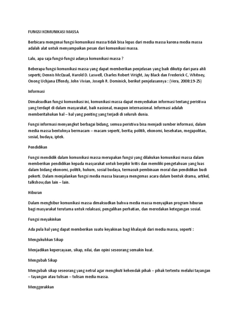 Fungsi komunikasi kepada masyarakat. Menurut laswell dan wright fungsi komunikasi boleh dikategorikan kepada empat bahagian iaitu penyebaran informasi dan amaran menjalinkan hubungan dengan kelompok kelompok di dalam masyarakat transmisi budaya masyarakat dan hiburan baran davis 2000. Komunikasi yang diaplikasikan sebagai hiburan berbentuk komunikasi verbal maupun non verbal. Komunikasi memiliki banyak fungsi. Fungsi komunikasi komunikasi sendiri berasal dari bahasa inggris communication yang berarti sama.