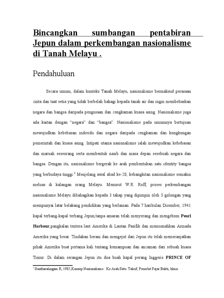 Skema jawapan nasionalisme di malaysia sehingga perang dunia kedua pengenalan latar belakang gerakan nasionalisme di tanah melayu sehingga perang dunia kedua. Namun gerakan ini merupakan satu tindak balas terhadap penjajahan asing. Wilayah wilayah di sebelah utara iaitu perlis kedah kelantan dan terengganu diserah kepada pemerintahan siam pada 18 oktober 1943 17. Selain itu gerakan nasionalisme di tanah melayu adalah sama dengan gerakan di negara asia lain kecuali thailand.
