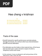 Ban seng v yap pek soo 1967 2 mlj 156. In the case of hee cheng v krishnan 1955 where this case concern where the plaintiff had claimed for specific performance and alternatively damages for breach of an alleged contract that have been entered into between them to sell the defendant s right in a tol land a house built on the land. Lim tan and sons sdn. Amounts to an attempt to sell and purchase rights under temporary occupation licences and is therefore unlawful which can be refereed to the case of hee cheng v krishnan.