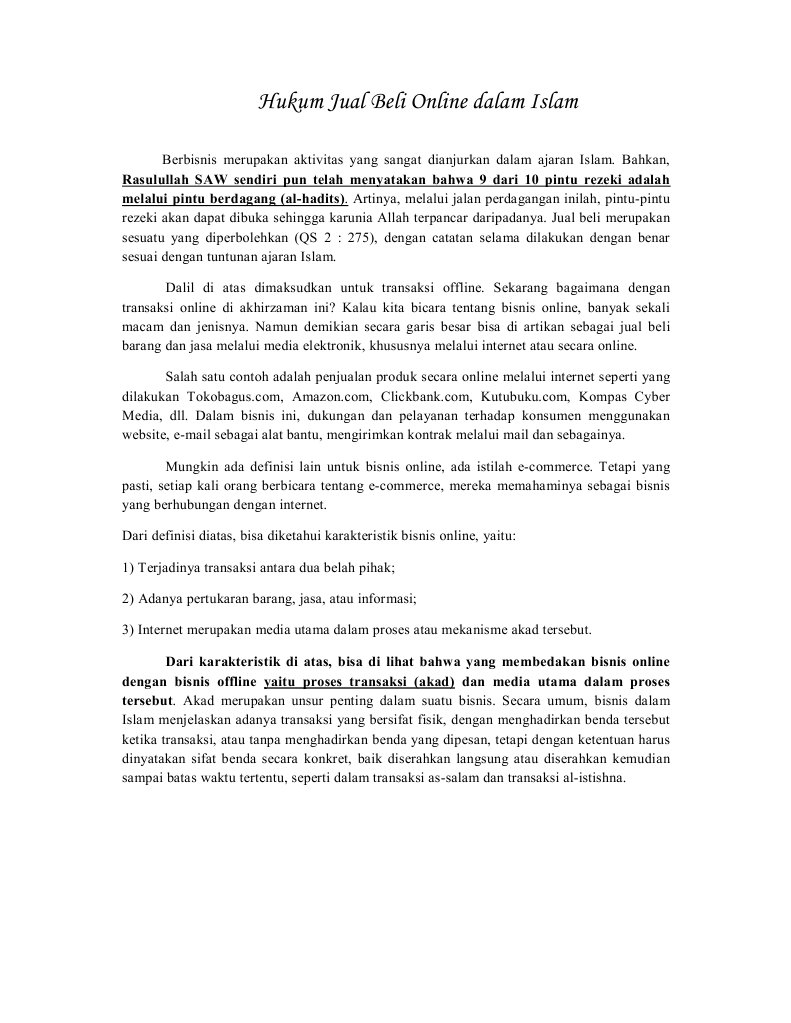 Adapun jawabannya adalah bahwasannya hukum akad transaksi jual beli melalui alat elektronik sah apabila sebelum transaksi kedua belah pihak sudah melihat mabi barang yang diperjualbelikan atau telah dijelaskan baik sifat maupun jenisnya serta memenuhi syarat syarat dan rukun rukun jual beli lainnya dengan dasar pengambilan hukum. Hukum jual beli pengertian jual beli. 1 mengkaji tinjauan hukum islam terhadap jual beli online 2 mengkaji hak hak konsumen dalam hukum islam dan undang undang perlindungan konsumen uupk 3 mengkaji relevansi jual beli online dalam tinjauan hukum islam terhadap undang undang perlindungan konsumen u upk. Karena itu hukum dasar jual beli online sama seperti akad jual beli dan akad as salam yaitu diperbolehkan dalam islam.