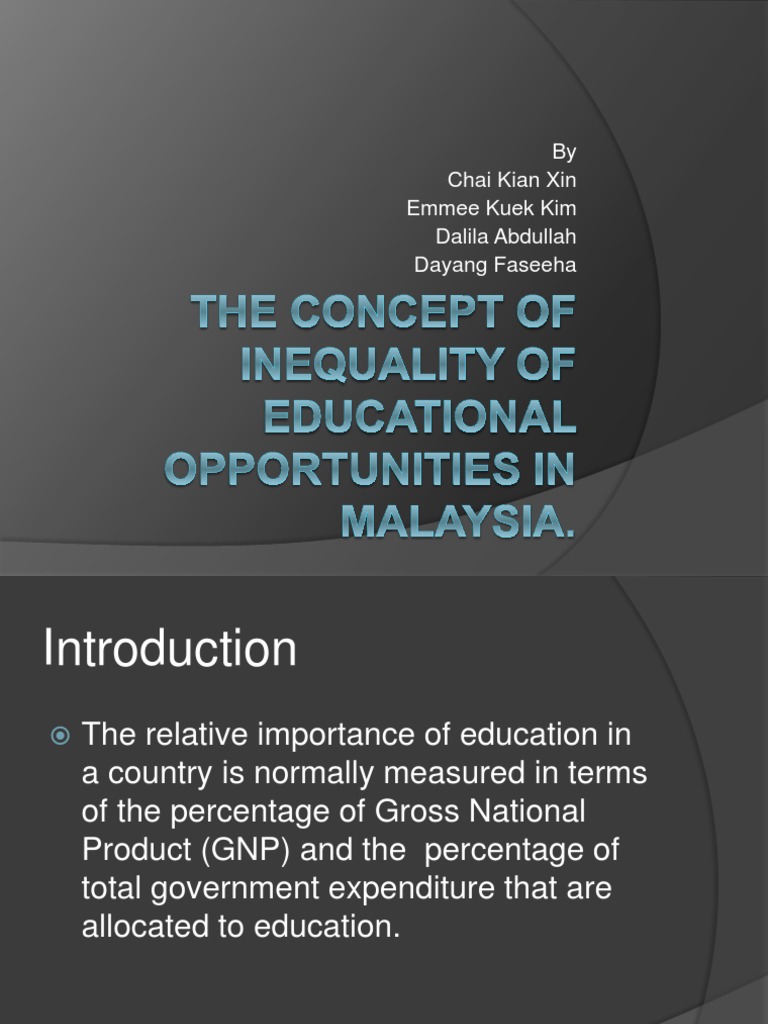 Education inequality in malaysia rosni bakar associate professor universiti malaysia sarawak.