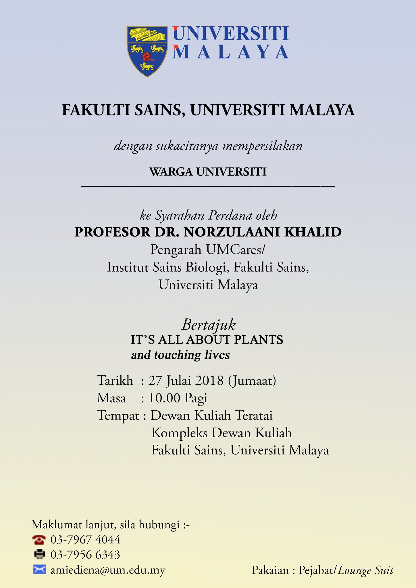 Institut sains biologi fakulti sains universiti malaya 50603 kuala lumpur wilayah persekutuan kuala lumpur malaysia. Connect issue inaugular lecture.