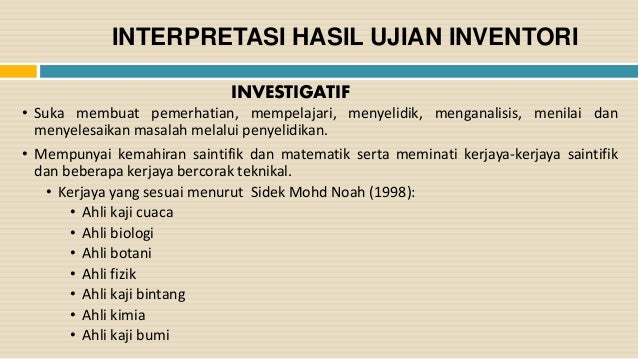 Selain secara online anda boleh kenal pasti minat kerjaya anda menerusi inventori psikologi yang sama standardnya seperti self directed search sds strong interest inventory ujian minat kerjaya sidek dan profil personaliti tajma.