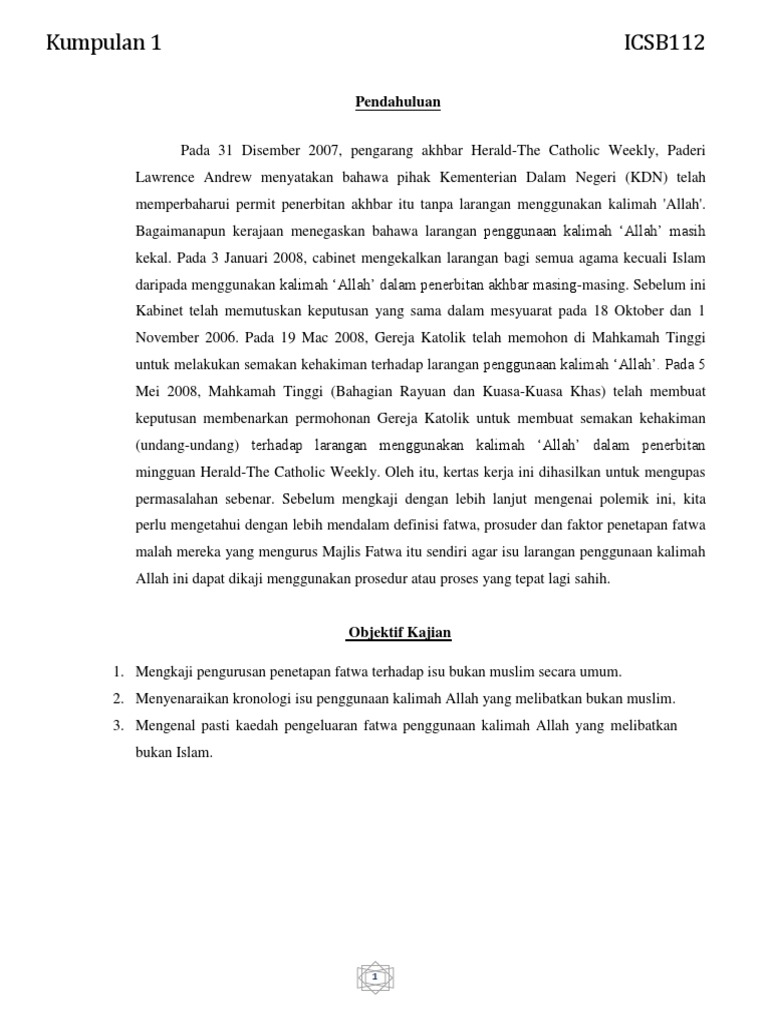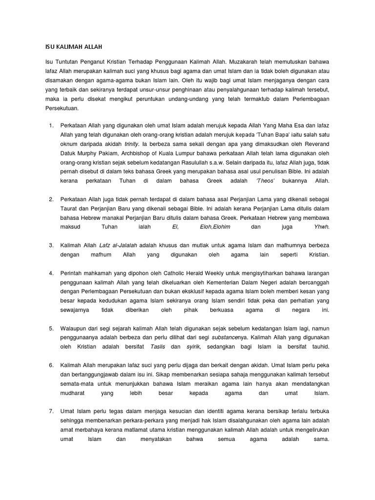 Isu Penggunaan Kalimah Allah Oleh Orang Bukan Islam Pdf