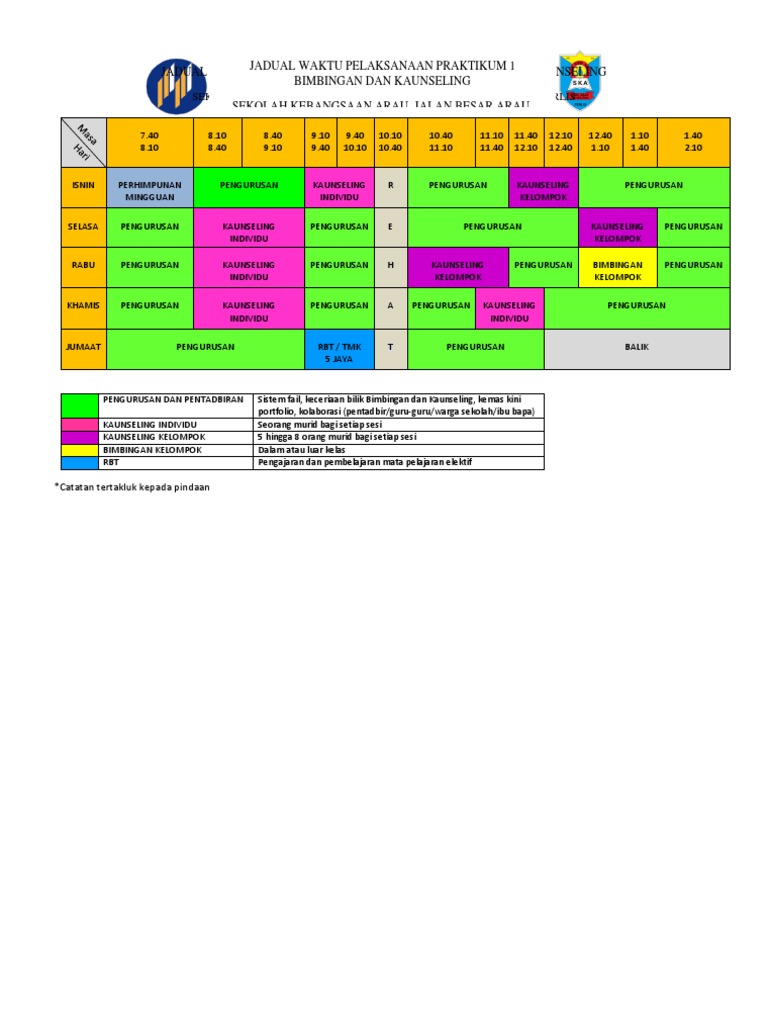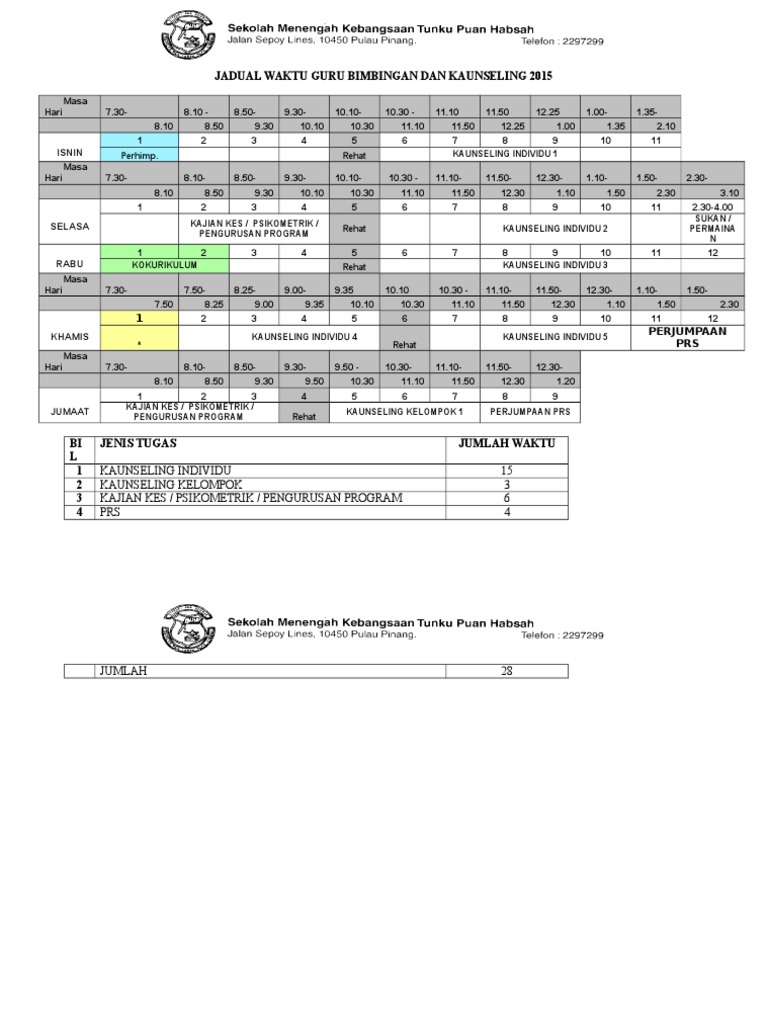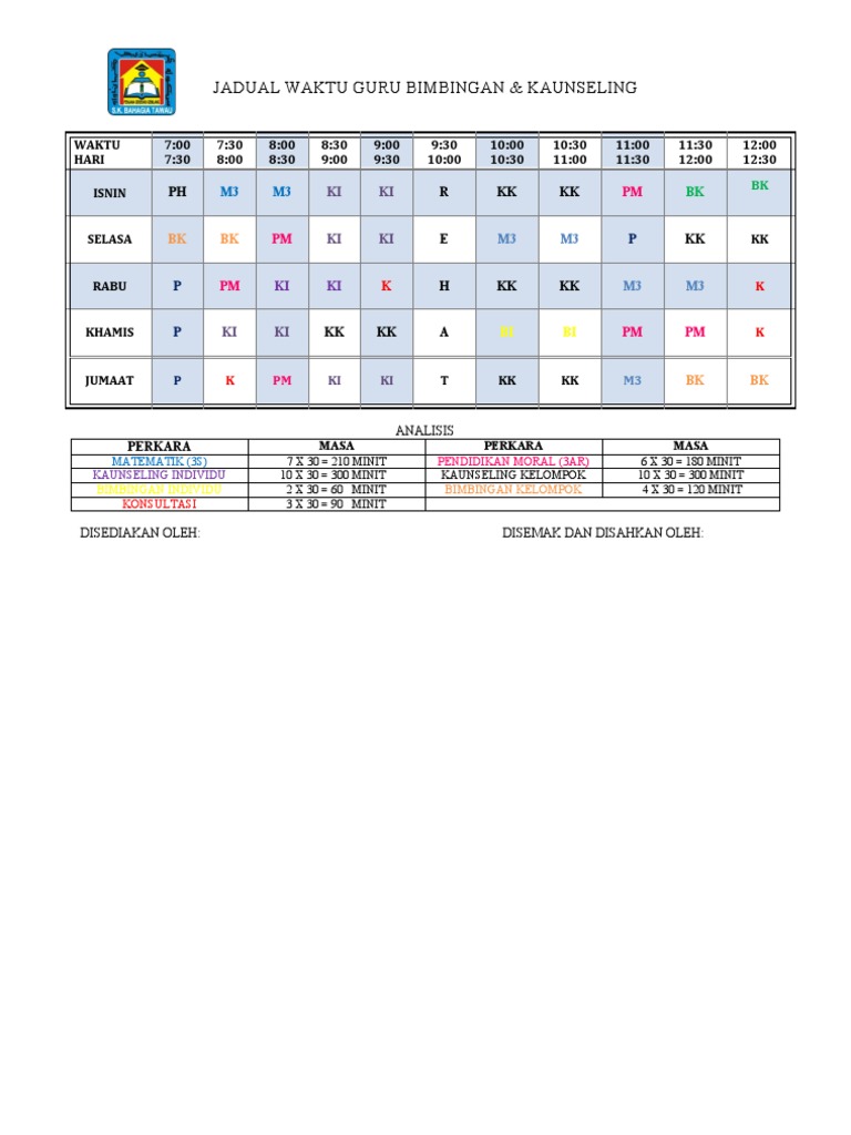 Jadual Waktu Guru Bimbingan Dan Kaunseling