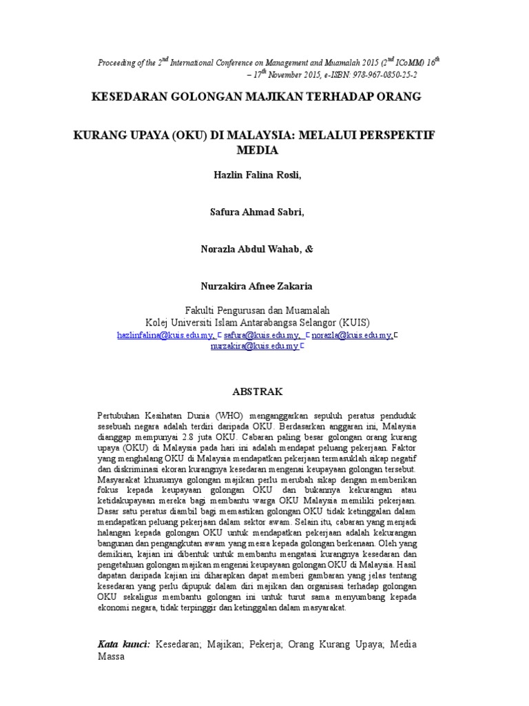 Akta orang kurang upaya 2008. Jurnal pembangunan kerjaya orang kurang upaya yang bisa anda unduh secara gratis dengan menekan tombol download yang ada pada tautan dibawah ini. Orang yang kurang upaya cacat biasanya mempunyai kelebihan lain. This article aims to explore the employment issues of persons with visual impairment in malaysia.