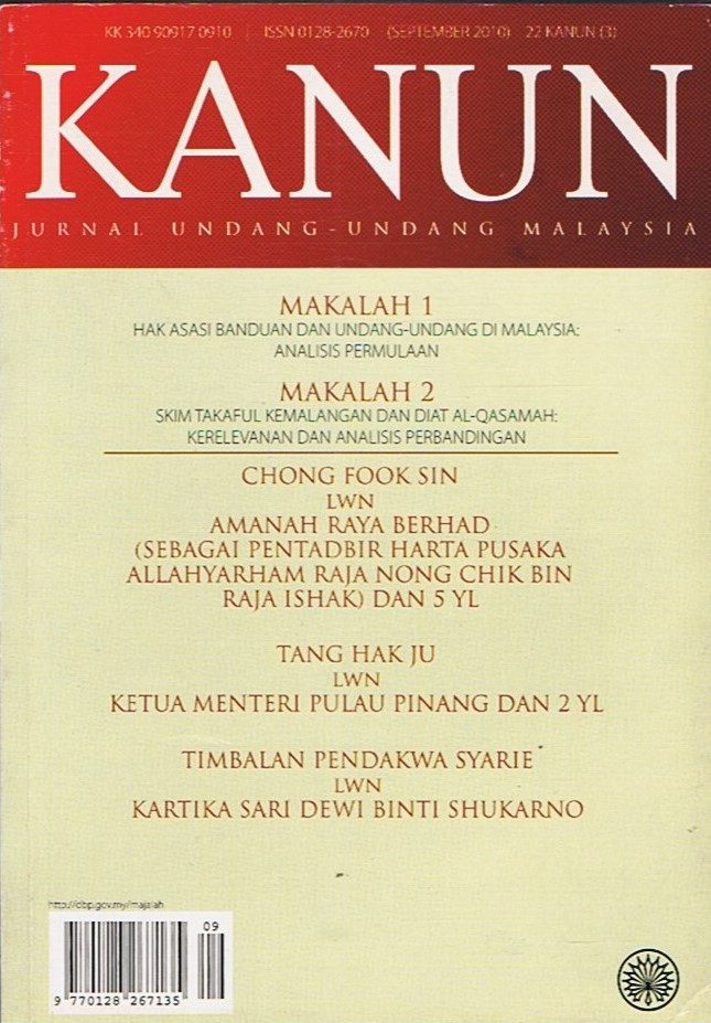 Jurnal undang undang malaysia. The journal emphasises on formation and application of law to the masses in malaysia south east asia and other regions in the world. Academia edu is a platform for academics to share research papers. Pendapat yang dikemukakan dalam jurnal ini merupakan pendapat penulis dan tidak semestinya mencerminkan pandangan sidang editor atau dewan bahasa dan pustaka. Jurnal undang undang dan masyarakat juum issn 1394 7729 is a malaysian journal of law and society published twice a year in april and september by ukm press.