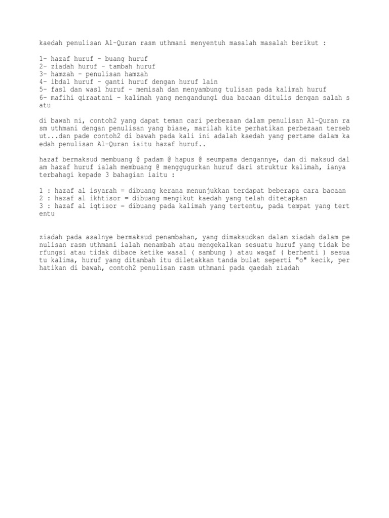 Rasm bisa diartikan atsar bekas khat tulisan atau metode penulisan. Ziadah merupakan satu perkara penting yang perlu diketahui dalam penulisan dan pembacaan rasm uthmani. Kaedah penulisan rasm uthmani. Kaedah penulisan rasm uthmani banyak yang tidak menepati lafaz bacaan.
