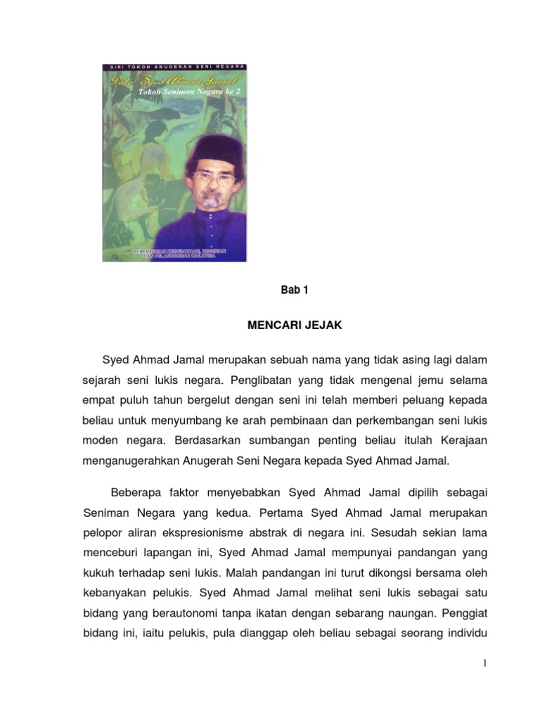 Begitupun beliau terus bergiat dalam bidang seni lukis. Dato syed ahmad jamal pengherotan terhadap the bait umpan dilakukan dengan intensif sekali sehingga aksi burung hadir secara separuh lut sinar. Syed ahmad jamal was born in bandar maharani johor back in 1929. Lni merupakan perkembangan yang amat drastik kerana bentuk dan latar telah hilang wajah realiti.