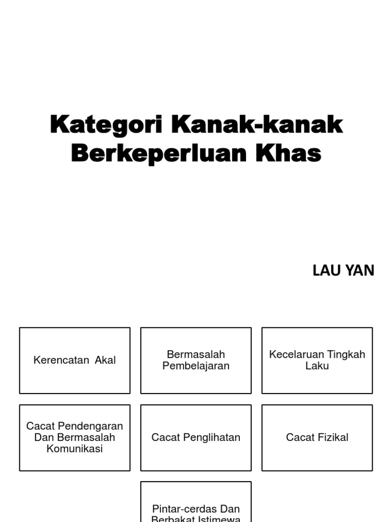 Kategori kanak kanak berkeperluan khas. Terdapat 3 kategori kanak kanak berkeperluan khas iaitu. Bermasalah dlm mendengar bercakap membaca menulis atau membuat pengiraan. Jenis jenis murid berkeperluan khas sektor pendidikan di negara kita telah menegaskan konsep hak semua kanak kanak untuk diberi pendidikan tanpa mengira latar belakang sosial mahupun perkembangan intelek kanak kanak tersebut. Definisi kanak kanak berkeperluan khas kanak kanak berkeperluan khas exceptional children terdiri daripada kanak kanak yang mengalami kesukaran belajar.
