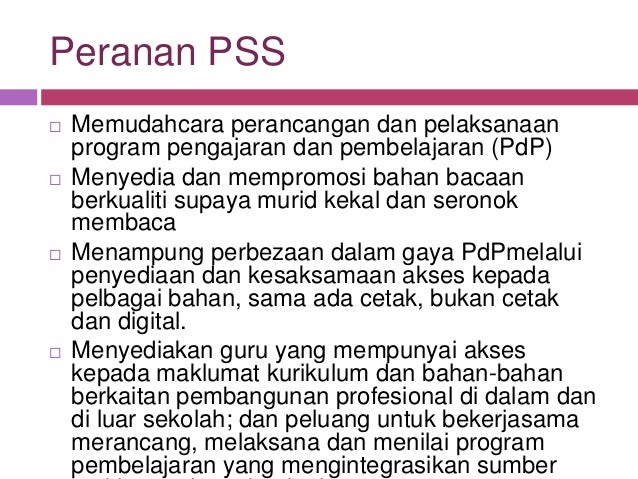 Kepentingan pusat sumber sekolah. Pusat sumber sekolah dapat bertindak sebagai bank atau gedung ilmu penngetahuan iaitu bahan pelajaran dapat dipilih untuk penggunaan di dalam kelas atau di rumah. Kepentingan kajian kajian ini adalah diharap dapat mengenalpasti penggunaan pusat sumber sekolah pss dalam kalangan guru guru di sekolah menengah. Selain itu pusat sumber ini juga memberi panduan kepada guru dan murid murid untuk mencari memiliki menghasilkan dan menggunakan bahan selaras dengan keperluan dan tujuan tugasan masing masing. Perpustakaan ditubuhkan di sekolah daerah negeri institusi pendidikan tinggi dan sebagainya.