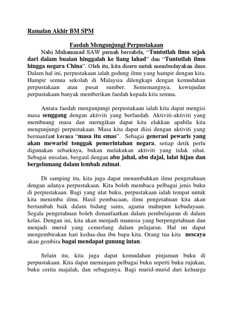 Murid sekolah mestilah memanfaatkan perpustakaan. Pusat sumber sekolah dapat bertindak sebagai bank atau gedung ilmu pengetahuan iaitu bahan pelajaran dapat dipilih untuk penggunaan di dalam kelas atau di rumah. Pusat sumber sekolah dapat bertindak sebagai bank atau gedung ilmu penngetahuan iaitu bahan pelajaran dapat dipilih untuk penggunaan di dalam kelas atau di rumah. Selain itu pusat sumber ini juga memberi panduan kepada guru dan murid murid untuk mencari memiliki menghasilkan dan menggunakan bahan selaras dengan keperluan dan tujuan masing masing.