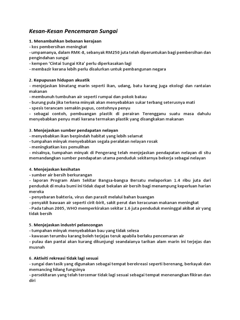 Kesan Pencemaran Alam Sekitar Pdf