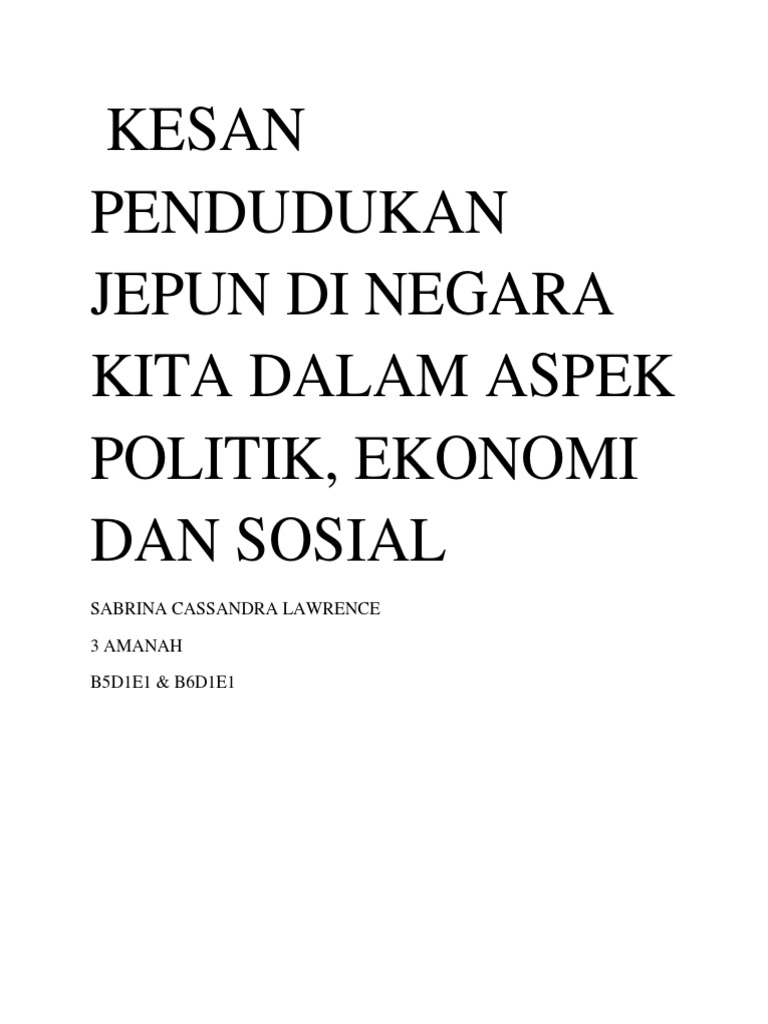 Kesan pendudukan jepun di tanah melayu pdf. Dasar british ini juga telah menebalkan sikap prejudis dan prasangka yang sukar dibendung dalam kalangan etnik di tanah melayu. Pendudukan mereka bermula pada 15 februari 1942 dan berakhir pada 12 september 1945. Kesempitan hidup ketika zaman kemelesetan ekonomi dan pendudukan jepun turut merenggangkan hubungan di antara orang melayu dan cina. Kuasa terakhir yang pernah menjajah tanah melayu suatu ketika dahulu adalah jepun.