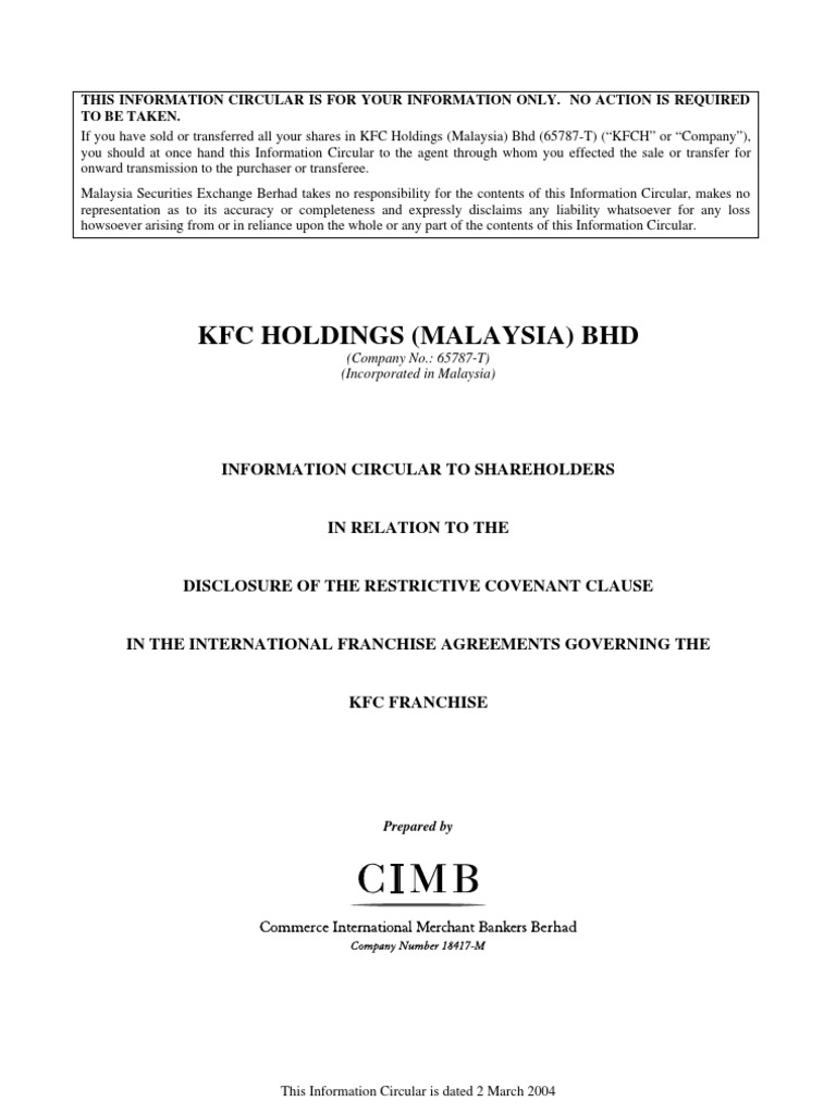 Johor bahru johor malaysia. Files are in adobe pdf format. Companies on bursa malaysia are listed under either the main or ace markets. Kfc holdings malaysia bhd profile updated.