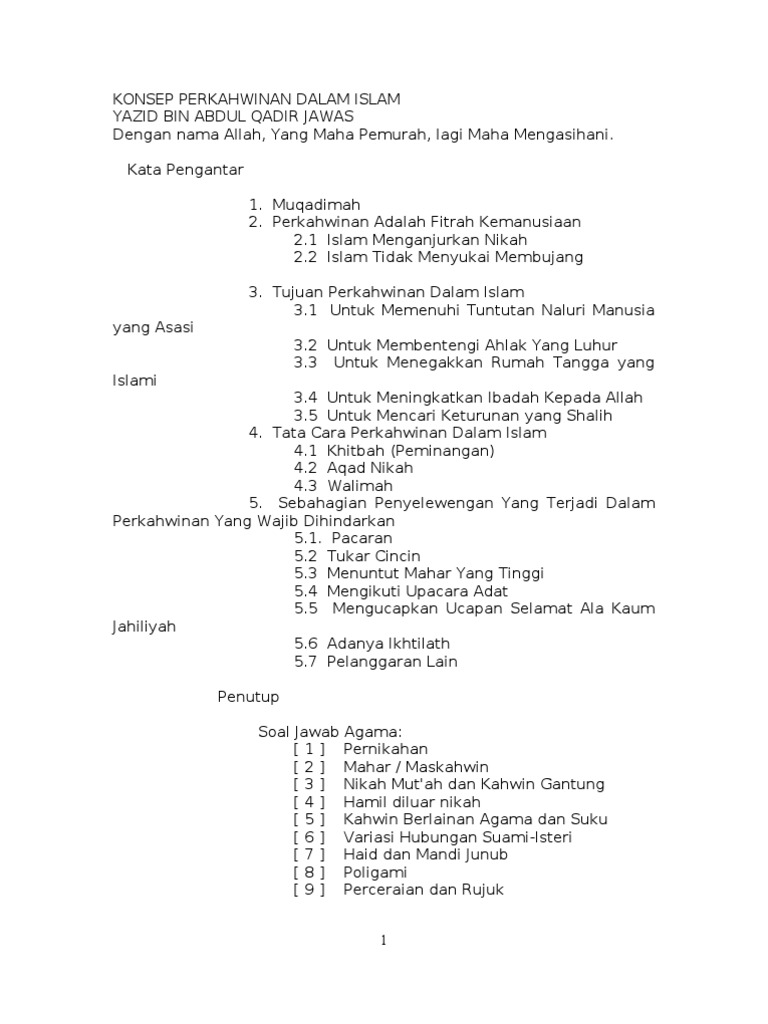 Perkahwinan merupakan instrumen prelimenari primer kepada pembinaan keluarga sebagai unit asas dan tunjang sesebuah masyarakat. 4 4 konsep perkahwinan dalam islam dalam islam perkahwinan adalah suatu ibadat dan sunnah rasulullah s a w. Islam begitu teliti dalam menyediakan persekitaran yang sihat bagi membesarkan anak anak.