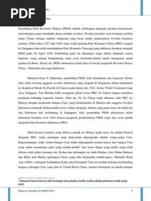 Latar belakang parti komunis malaya. Sejak itu gerakan komunis di negeri negeri melayu menjadi semakin teratur dan rancak. Bagaimana paham komunis masuk ke indonesia. Kajian ini juga membincangkan jatuh bangun perjuangan pkm di tanah melayu dan faktor faktor yang menyebabkan kegagalan perjuangan pkm. Karl mark merupakan seorang filsuf sekaligus pakar ekonomi dan politik.