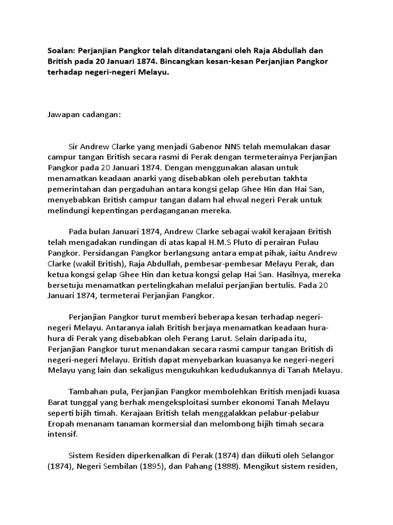 Makalah ini bertujuan menganalisis sejarah dalam mendedahkan mengapa perjanjian ini. Sultan ismail dan raja yusuf turut hadir. Latar belakang perjanjian pangkor perak merupakan daerah penghasil timah utama ketika abad kesembilan belas yang pada waktu itu masih dikuasai oleh inggris. Latar belakang perjanjian pangkor.
