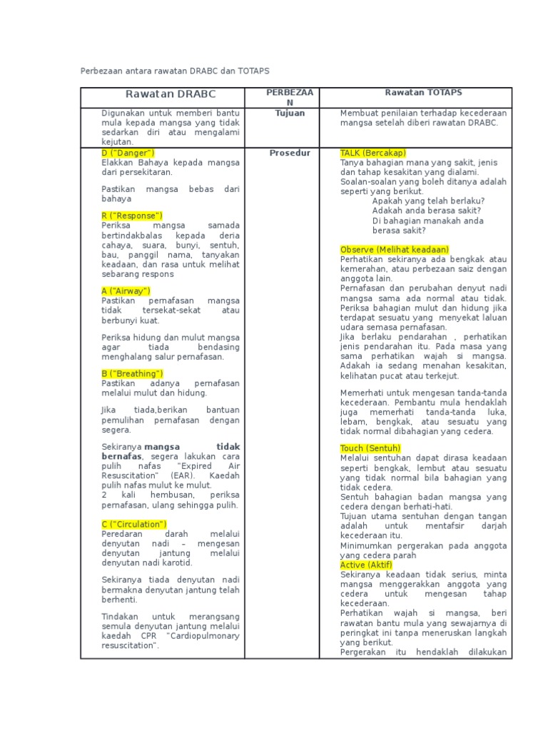Maksud d r a b c. 2 kaedah teknik t o t a p s hiddayathul hayyat. Remember the following letters. Standar operasional prosedur sop pengertian fungsi tujuan manfaat cara prinsip pelaksanaan pengembangan penerapan untuk pembahasan kali ini kami akan mengulas mengenai standar operasional prosedur sop yang dimana dalam hal ini meliputi pengertian fungsi tujuan manfaat cara prinsip pelaksanaan pengembangan dan penerapan nah agar lebih dapat memahami dan dimengerti. Drabc in first aid means.