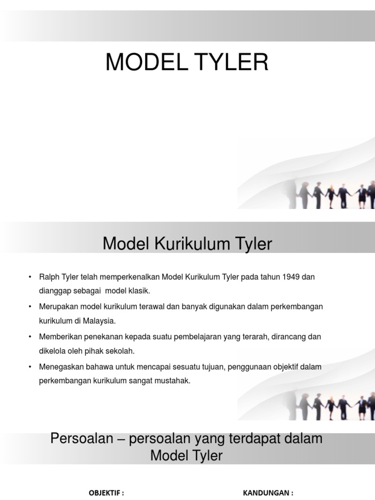 Ini kerana sistem pendidikan di malaysia kini tidak lagi berorientasikan peperiksaan semata mata tetapi mula beralih kepada perkembangan pelajar yang diselaraskan dengan pelaksanaan pentaksiran berasaskan sekolah mohd asnawi et al 2010. Model tyler model tyler adalah model yang paling dikenal bagi perkembangan kurikulum dengan perhatian khusus pada fase perencanaan dalam bukunya basic principles of curriculum and instruction.
