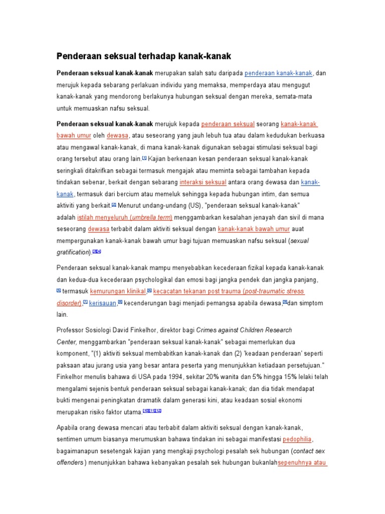 Dalam bab ini kita akan cuba mengenalpasti mitos dan memberikan anda penerangan mengenai penderaan seksual kanak. In lieu with this notion countries pay much attention to their development and wellbeing. Kecederaan itu disebabkan kekerasan dan penggunaan agen yang disengajakan kepada tubuh kanak kanak itu. Penderaan fizikal bermaksud seseorang kanak kanak yang dicederakan dari segi fizikal yang menyebabkan kecederaan dan boleh dilihat di mana mana bahagian tubuhnya.