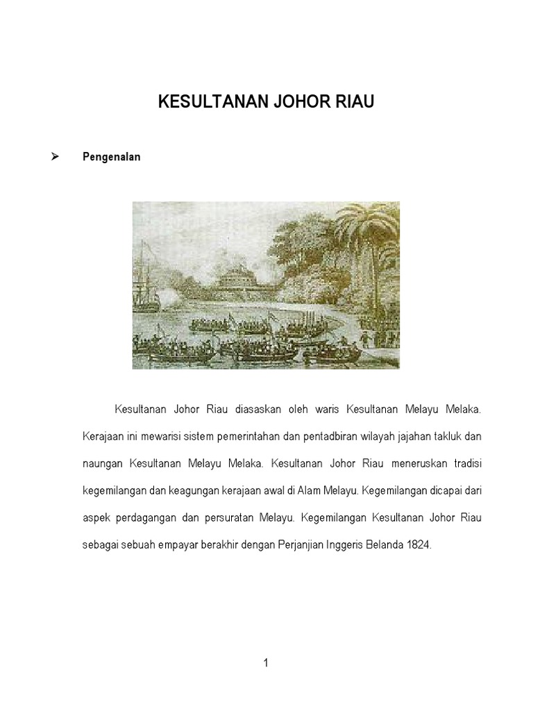 1 pengasasan kesultanan johor riau a pengasasan kerajaan diasaskan oleh raja ali putera sultan mahmud shah dan tun fatimah dengan gelaran sultan alauddin riayat shah i. Also called the sultanate of johor johor riau johor riau lingga or the johor empire was founded by malaccan sultan mahmud shah s son sultan alauddin riayat shah ii in 1528. A menyerang kubu pertahanan raja kechil b meminta bantuan opu bugis lima bersaudara c melantik tun abdul jalil sebagai menteri besar d menggalakkan kemasukan kapal perang portugis 4 antara sebab pemindahan pusat pentadbiran kesultanan johor riau ialah a mengukuhkan kedaulatan kerajaan b keperluan strategi ketenteraan c kemajuan sistem perdagangan 5 perang tiga segi telah tercetus. Pada tahun 1511 melaka dikuasai oleh pihak portugis dan sultan mahmud shah sultan melaka ketika.