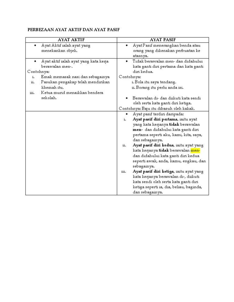 Kalimat aktif dan pasif aktif. Pengertian kalimat aktif kalimat aktif dan pasif pengertian ciri perbedaan contoh kalimat aktif ialah kalimat dimana subjeknya secara aktif melakukan sesuatu berupa predikat kepada objeknya. Selain itu hal lain yang juga tidak boleh anda lupakan adalah memberikan penjelasan kepada orang yang bertanya kepada anda mengenai perbedaan antara hak opsi dan juga hak repudiasi. 21 08 12 comments ayat aktif dan pasif.