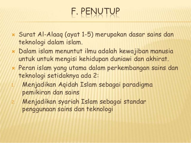Al qur an sebagai kitab suci umat islam harus difungsikan dalam kehidupan sehari hari agar tidak terjadi kesenjangan antara norma norma al qur an dengan sikap dan tingkah laku kaum muslimin pada umumnya serta para ilmuwan muslim pada khususnya. Dalam setiap waktu para ahli dan ilmuwan terus mengkaji dan meneliti sains dan teknologi sebagai penemuan yang paling canggih dan modern. If you continue browsing the site you agree to the use of cookies on this website. Sains berasal daripada perkataan latin scientia atau ilm dalam bahasa arab yang bermaksud ilmu.