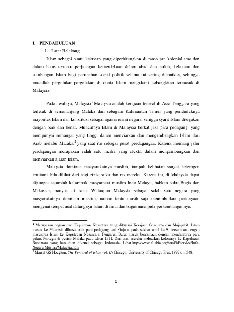 Pendahuluan didalam memahami ajaran agama islam setiap muslim amat tergantung pada kemampuan para ulama dalam menggali dan menarik kesimpulah hulum hukum islam dari sumbernya al qur an dan as sunnah. Sejarah perkembangan islam di tanah melayu perkembangan pendidikan islam di malaysia tidak dapat dipastikan secara tepat ia bermula. Sejarah masuknya islam di malaysia tidak terlepas dari peran kerajaan kerajaan melayu jauh sebelum datangnya inggris di kawasan tersebut. 52 set erusnya pada t ahun 1907 ditubuhka n p ula.