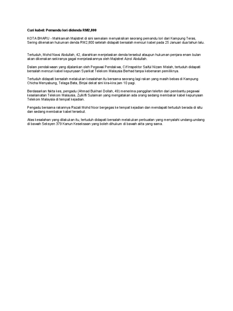 Dapatkan berita seksyen 379 kanun keseksaan dan cari tajuk utama berita terkini mengenai seksyen 379 kanun keseksaan dari astro awani. 1 mana mana orang atau badan dalam siapa mana mana tanah berimilik atau kepentingan adalah buat masa itu terletakhak atau atas permintaan siapa suatu kaveat telah dimasukkan berkenaan dengan mana mana tanah atau kepentingan hendaklah dalam masa yang ditetapkan memberitahu pendaftar dalam borang 26a mengenai pertukaran alamatnya dan pendaftar. Ilukuman menurut kanun keseksaan hukuman bagi kesalahan mencuri menurut kanun keseksaan malaysia telah diperuntukkan di dalam seksyen 379 379a l 380 381 dan 382. Setiap seksyen ini pula memperuntukkan hukuman yang berbeza beza mengikut kategori kesalahan mencuri yang disabitkan.
