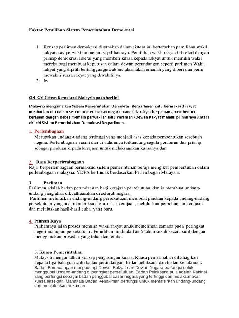 Malaysia adalah antara negara di dunia yang masih mengamalkan sistem pemerintahan raja berperlembagaan. Tinggal di negeri di mana dia akan bertanding. B takrif demokrasi berparlimen di malaysia. Ia merupakan warisan sistem politik yang masih kekal sehingga ke hari ini.