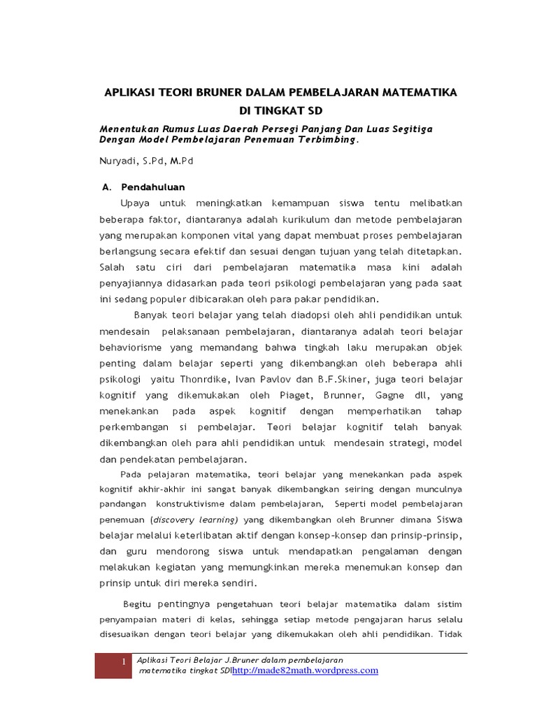 Aplikasi Teori Bruner Dalam Pembelajaran Matematika Di Tingkat Sd Pdf