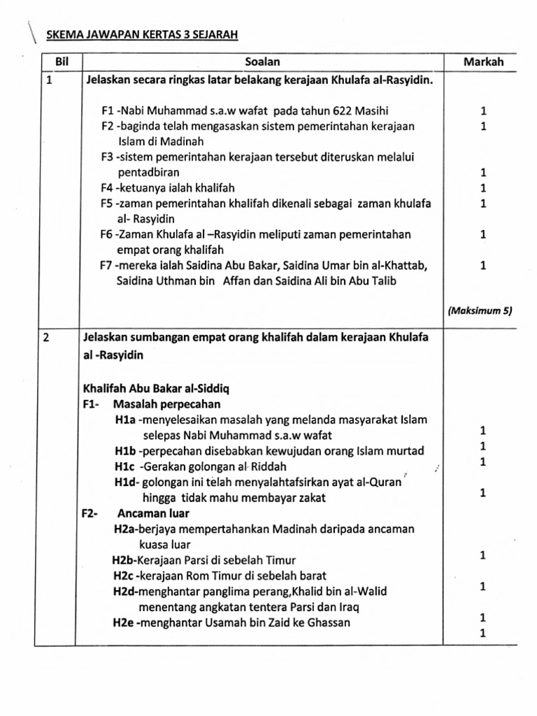 Ciri ciri kepimpinan khulafa ar rasyidin merupakan sumber rujukan umat islam selepas kewafatan rasulullah s a w merupakan golongan terpilih lagi bijaksana berilmu amanah tawaduk ikhlas berpendirian tegas. Siapakah khalifahar rasyidin yang pertama. Pemerintahan zaman khulafa ar rasyidin telah meninggalkan corak pemerintahan dan pentadbiran cemerlang kepada negara kita pada masa ini. Skema jawapan pembentukan kerajaan islam dan sumbangannya sejarah kertas 3 tingkatan 4 bab 6 soalan.